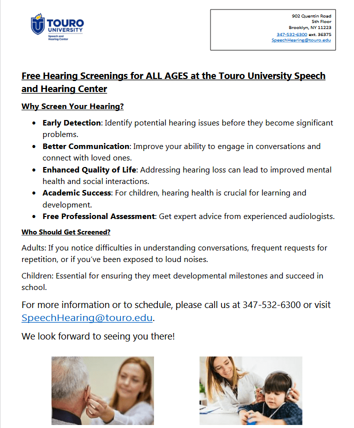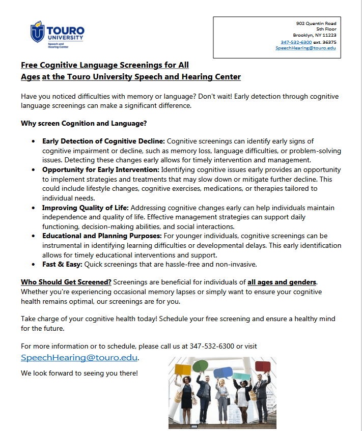 For more information, or to register, email kdiaz7@touro.edu or call 347 532-6300 ext 36375