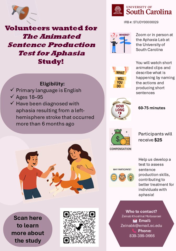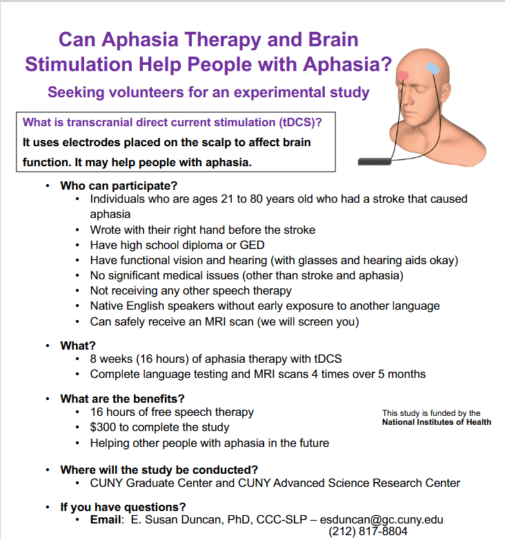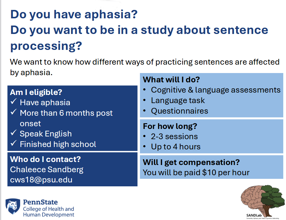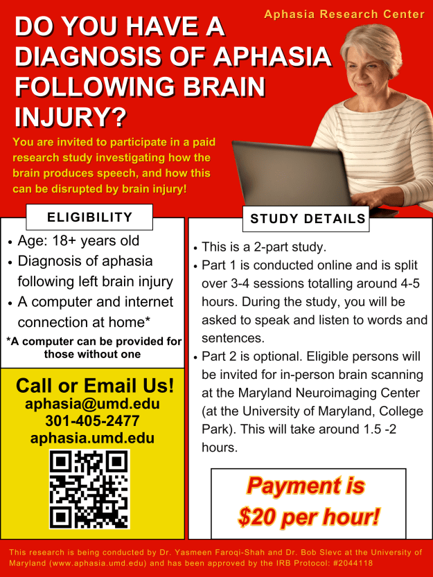 For more about aphasia research studies at the University of Maryland, go to https://sites.google.com/view/aphasia-umd-edu/